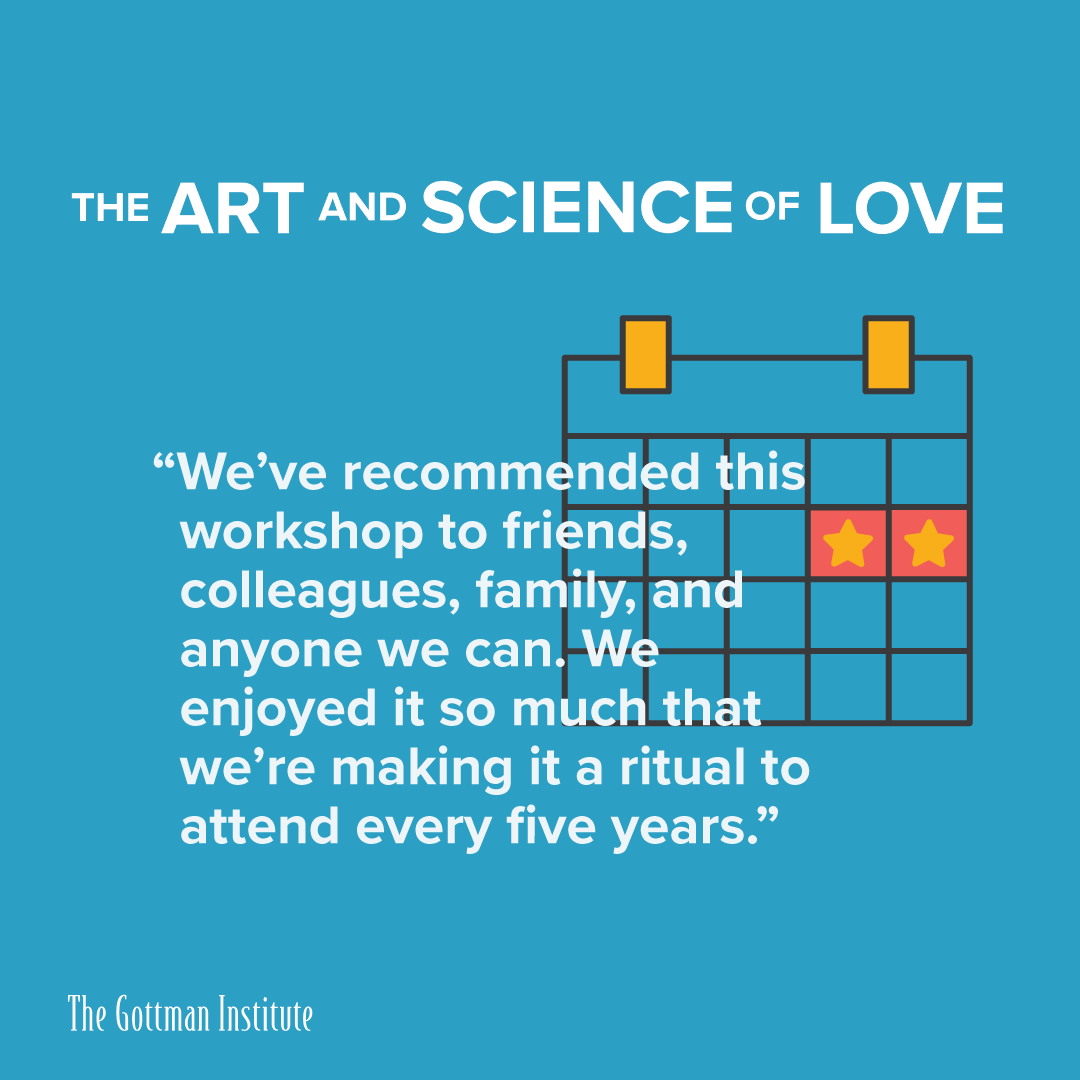 Discover why The Art and Science of Love stands apart from traditional relationship advice. This interactive two-day workshop combines engaging expert presentations with private couple exercises, giving you hands-on practice with proven techniques. Developed from over 50 years of scientific research with thousands of couples, the Gottman Method is grounded in what actually works in relationships that are happy and stable—not idealistic theories or anecdotal evidence.