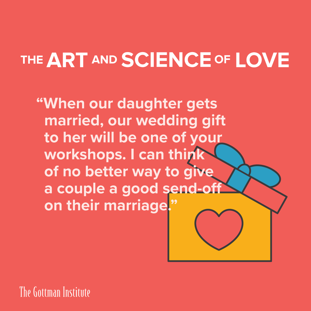 "When our daughter gets married, our wedding gift to her will be one of your workshops. I can think of no better way to give a couple a good send-off on their marriage."