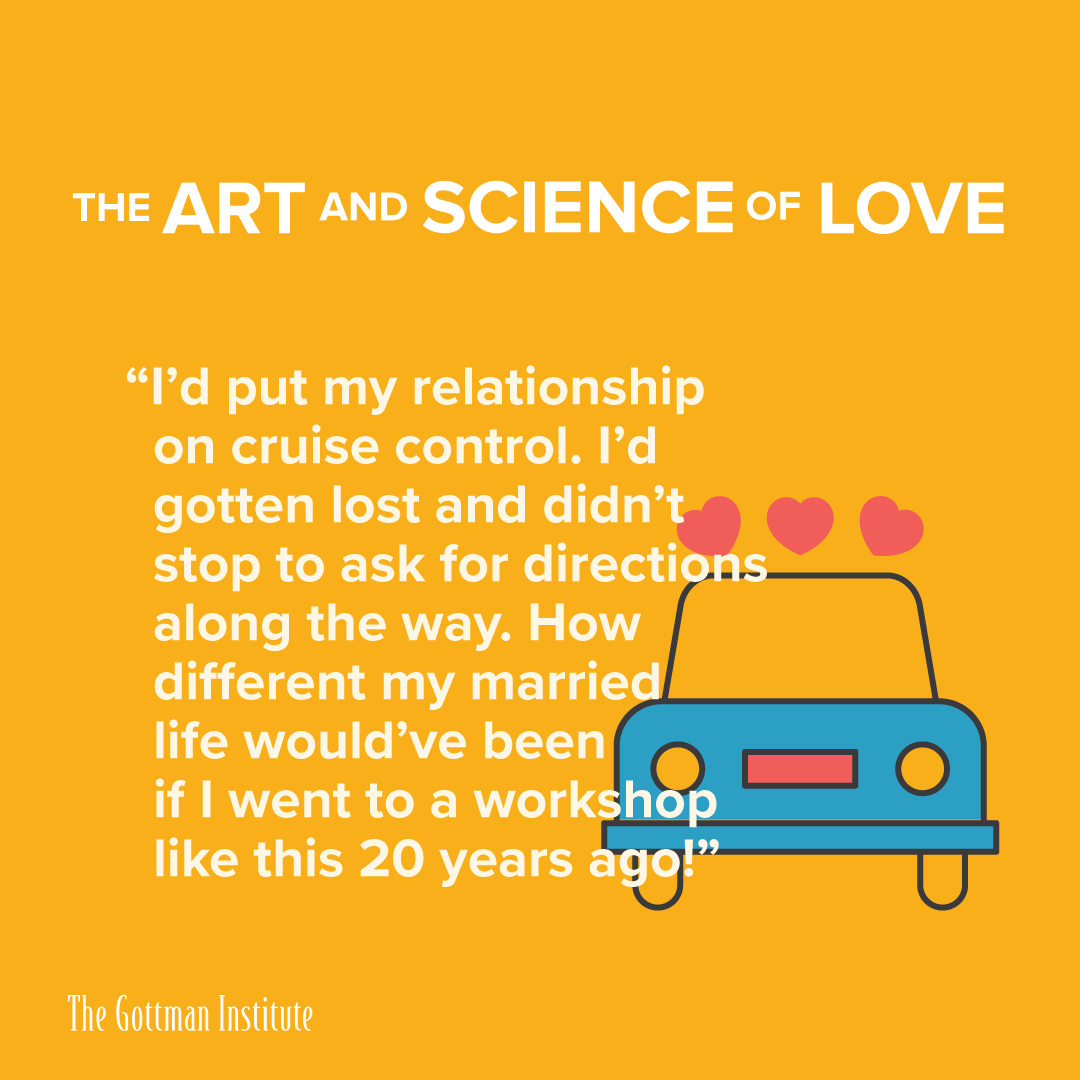 "I'd put my relationship on cruise control. I'd gotten lost and didn't stop to ask for directions along the way. How different my married life would've been if I went to a workshop like this 20 years ago!"